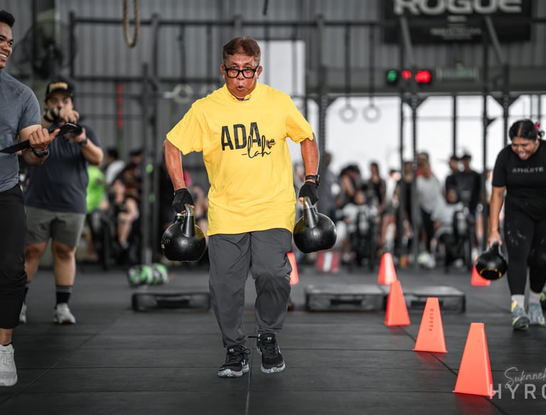 A guided, non-competitive workout designed for beginners and senior participants. Experience five simple but effective stations — Farmers Carry, Sled Push, Sled Pull, Ball Throw, and Box Step-Ups — coached step-by-step by the Pahlawan team to build strength, confidence, and joy in movement. Conducted at an easy pace, it’s perfect for anyone who wants to experience CrossFit and HYROX in a fun, relaxed, and supportive environment.