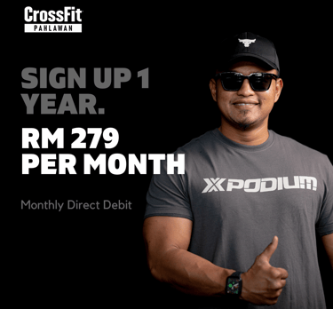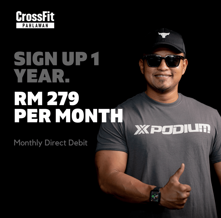 Welcome to CrossFit Pahlawan, where strength meets community! Embrace a healthier and fitter you with our exclusive Year-End Special. Sign up for a 1-year unlimited access membership and experience the power of CrossFit for just RM279 per month!